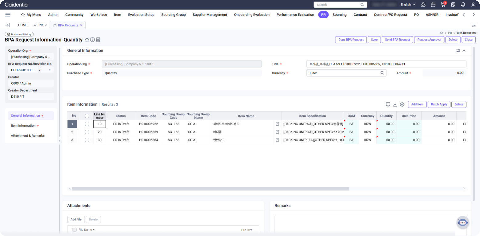 procurement tasks across PR/PO/GR/IV.- PR and Unit Price Contract Request Management