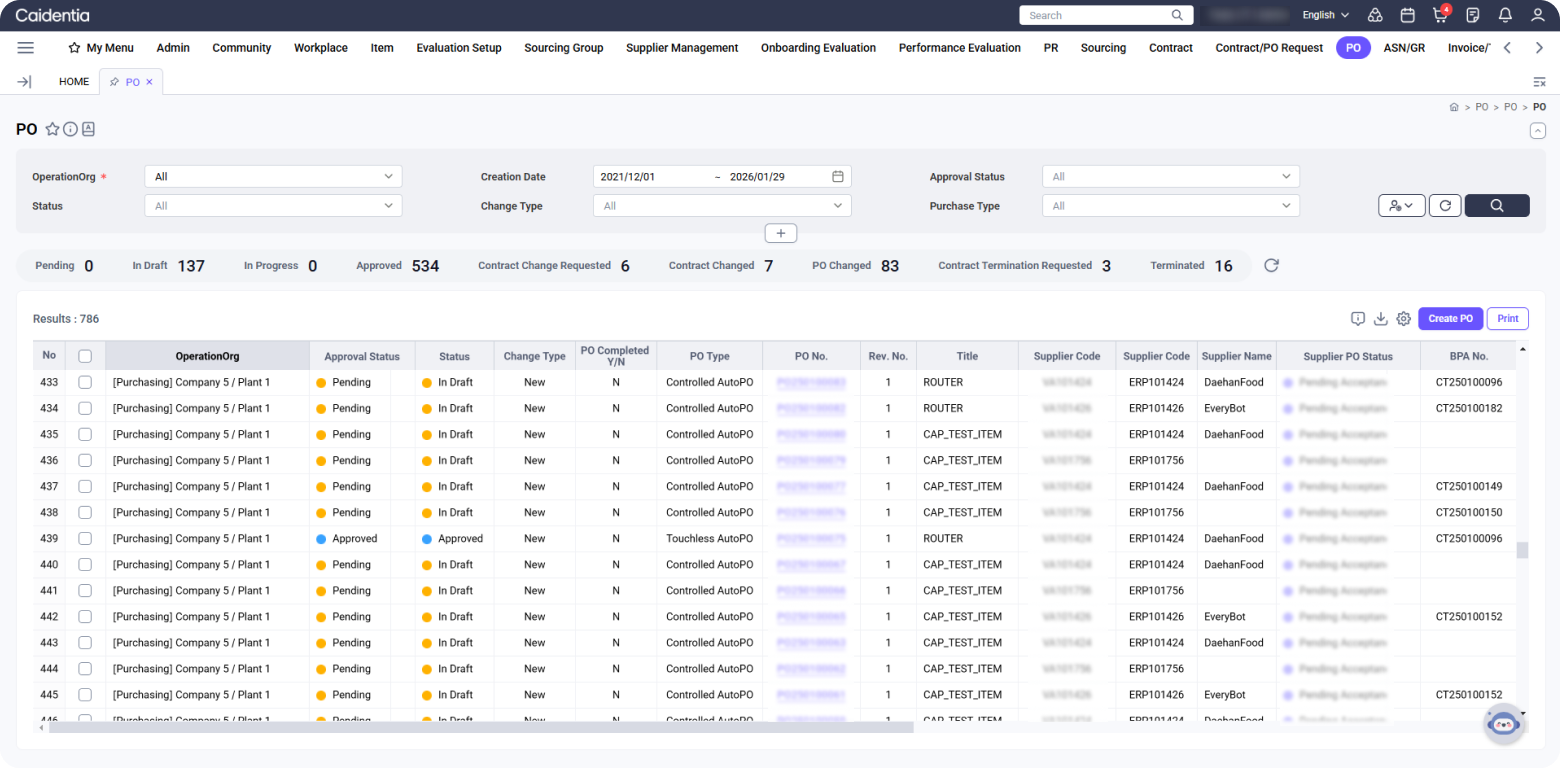 to support the most suitable PO process and optimize workflow.- PO definition based on Item Master and Contract data