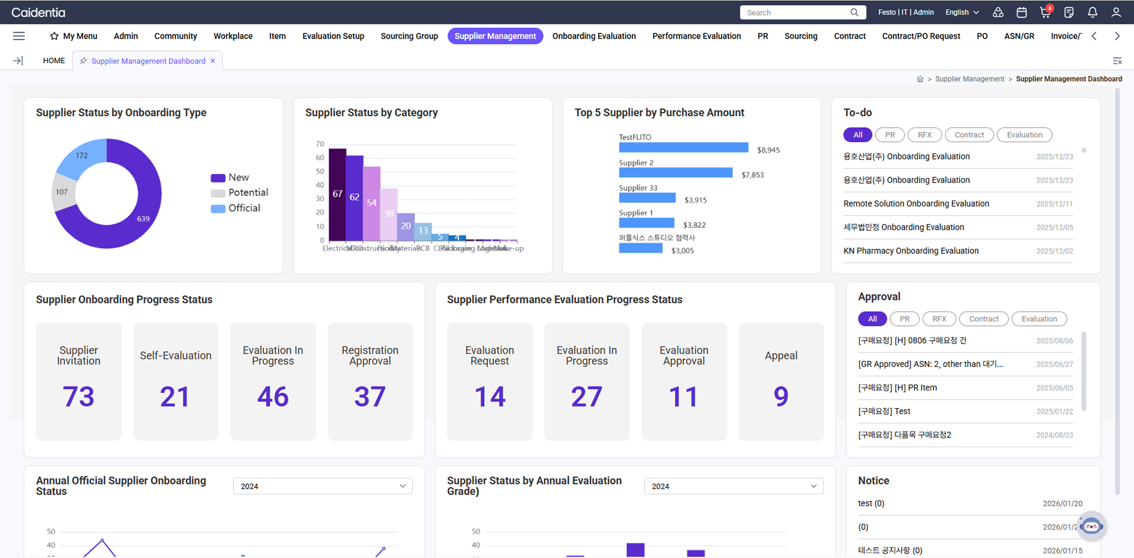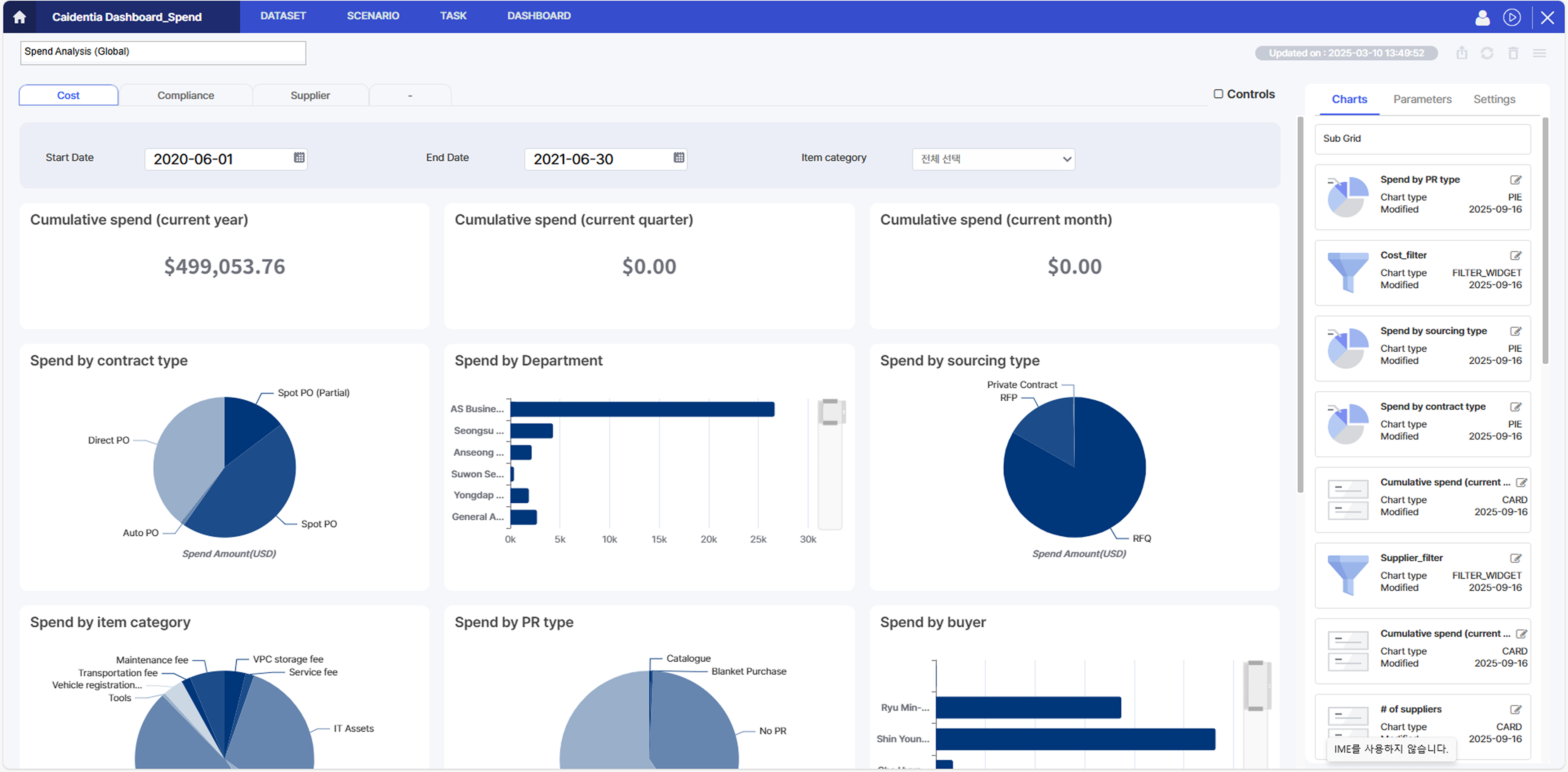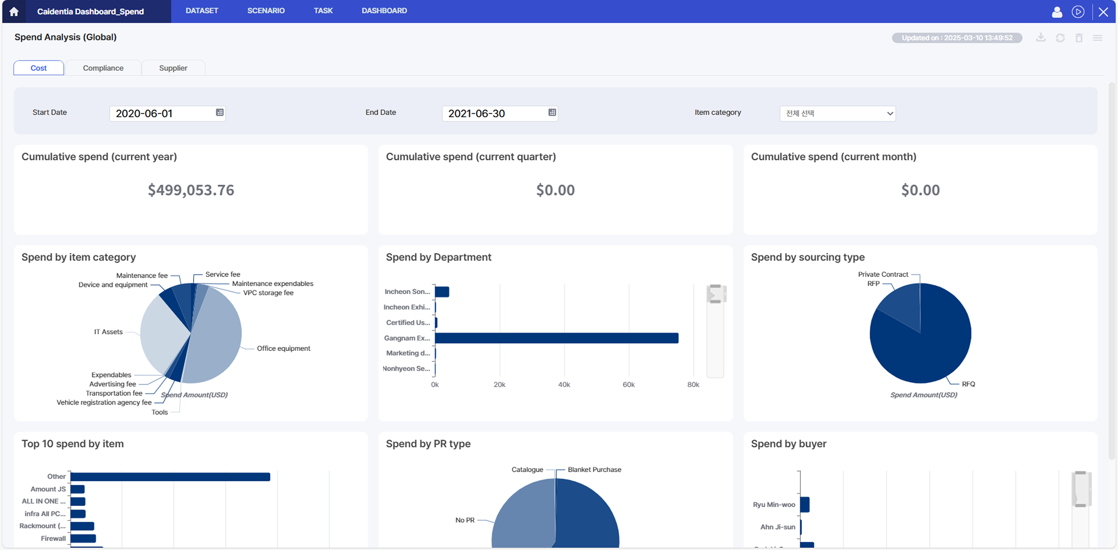 - 지출분석, 공급사 현황, 소싱 현황, 계약 현황, 규정준수 현황 등