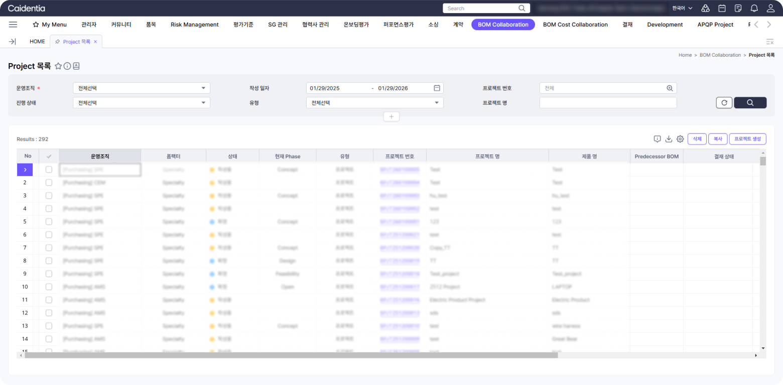 • BOM 프로젝트 생성 및 관리