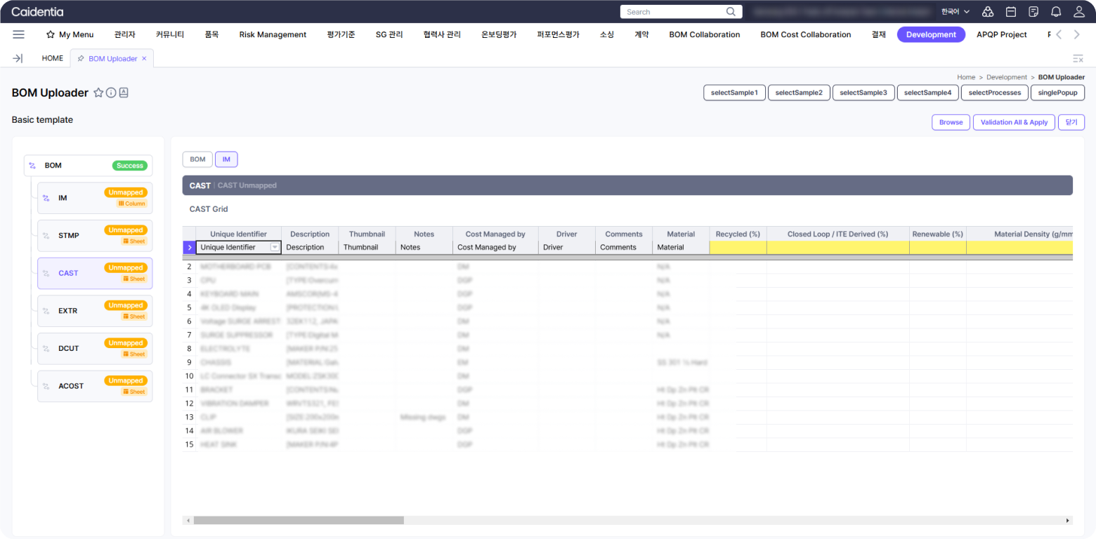 • BOM Uploader 기반 파일 업로드