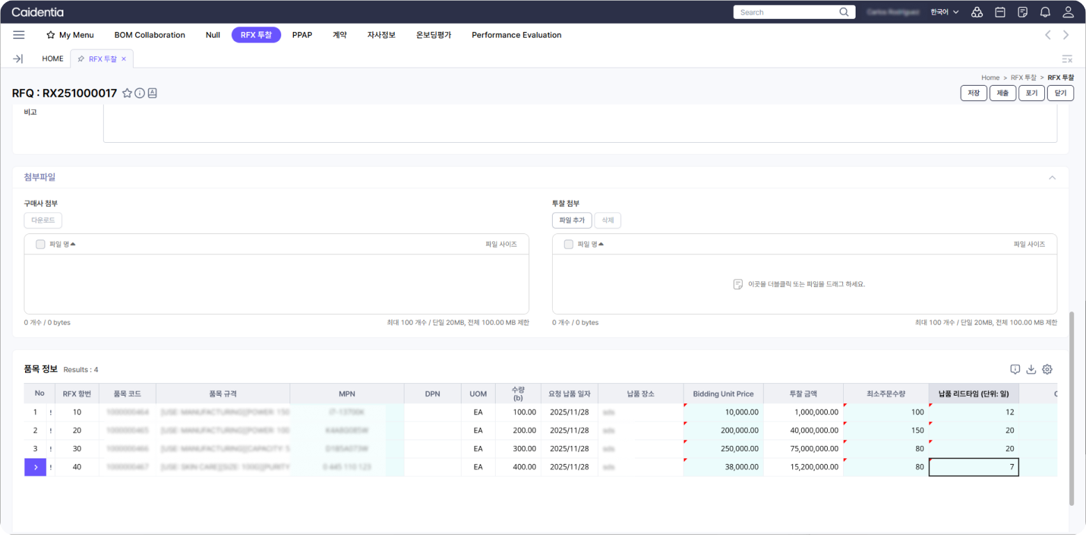 • BOM 기반 RFQ 진행
