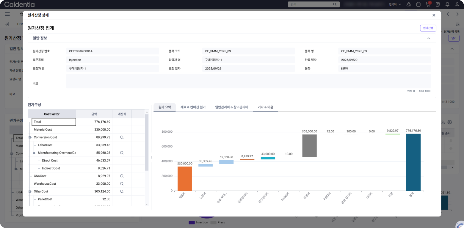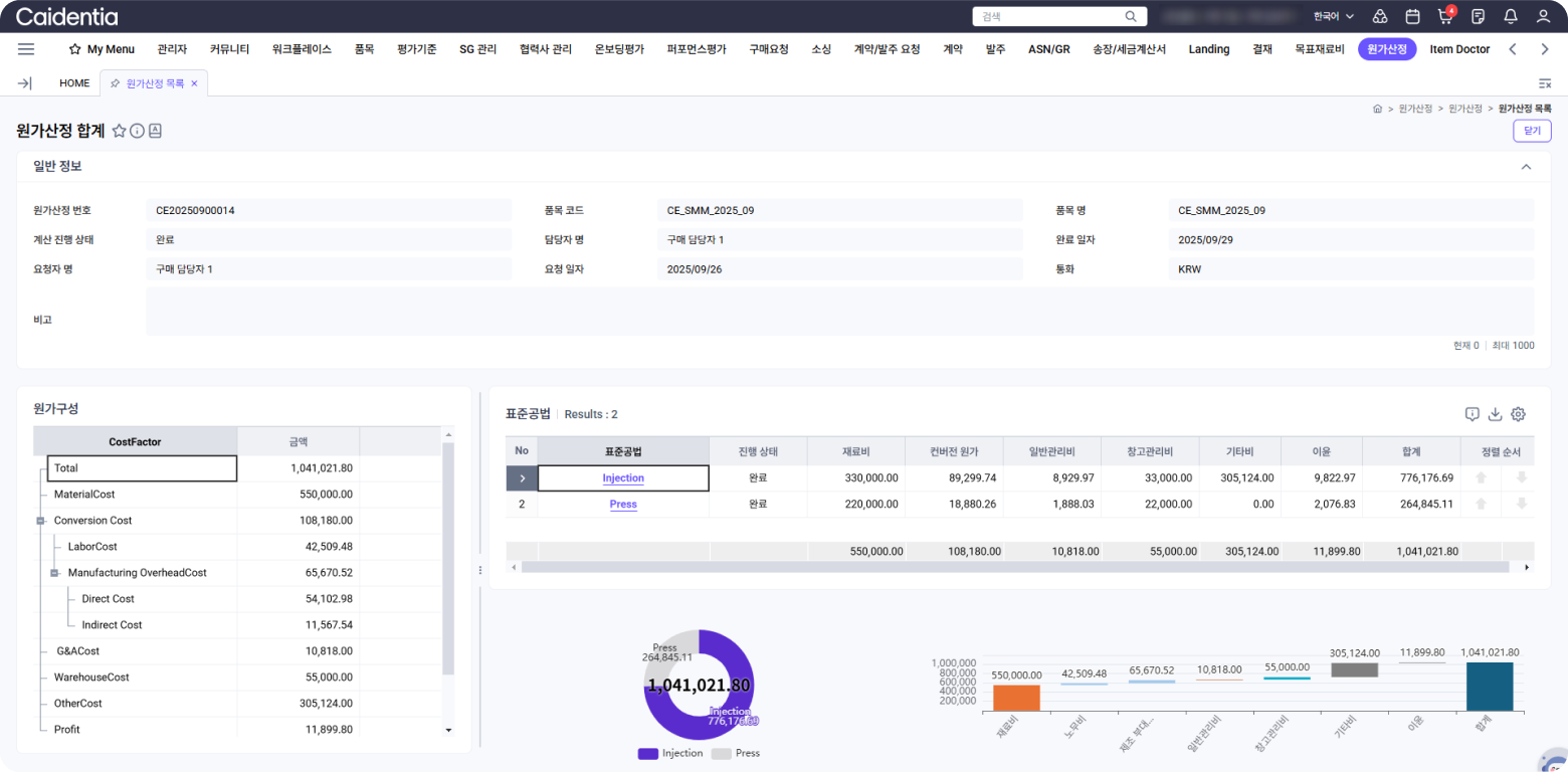 • 원가 산정 결과를 직관적으로 확인할 수 있는 분석 대시보드 제공