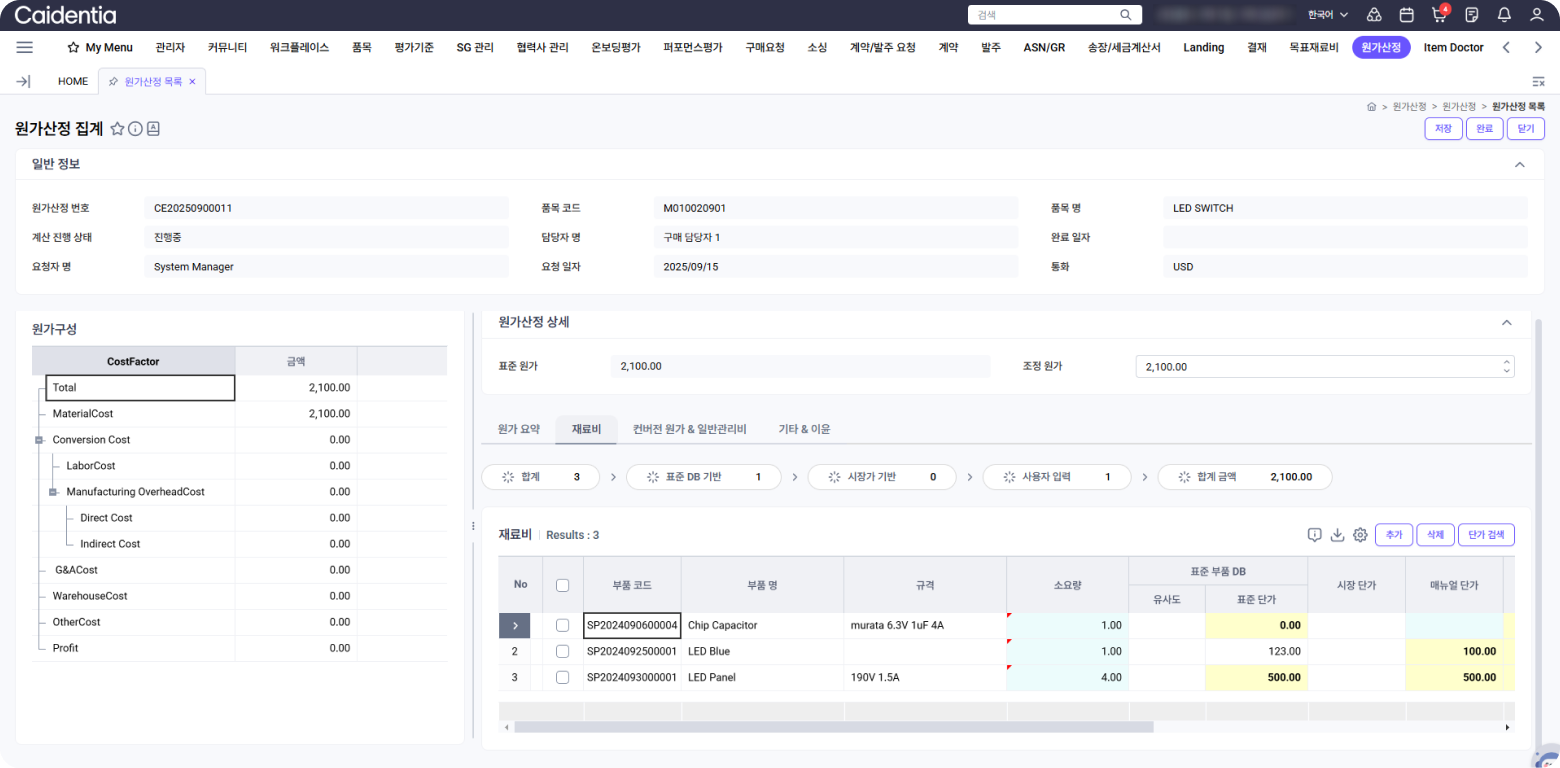 다양한 원가산정 Tool을 활용하여 최적의 재료비 산정을 지원합니다.