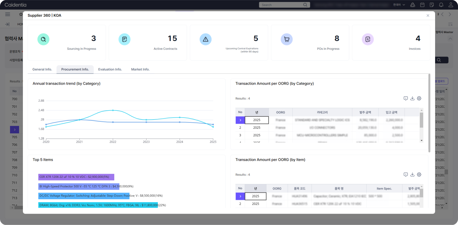 360º 관점의 통합 View를 제공하여 종합적인 협력사 관리를 지원합니다.- 진행중인 거래 현황 모니터링
