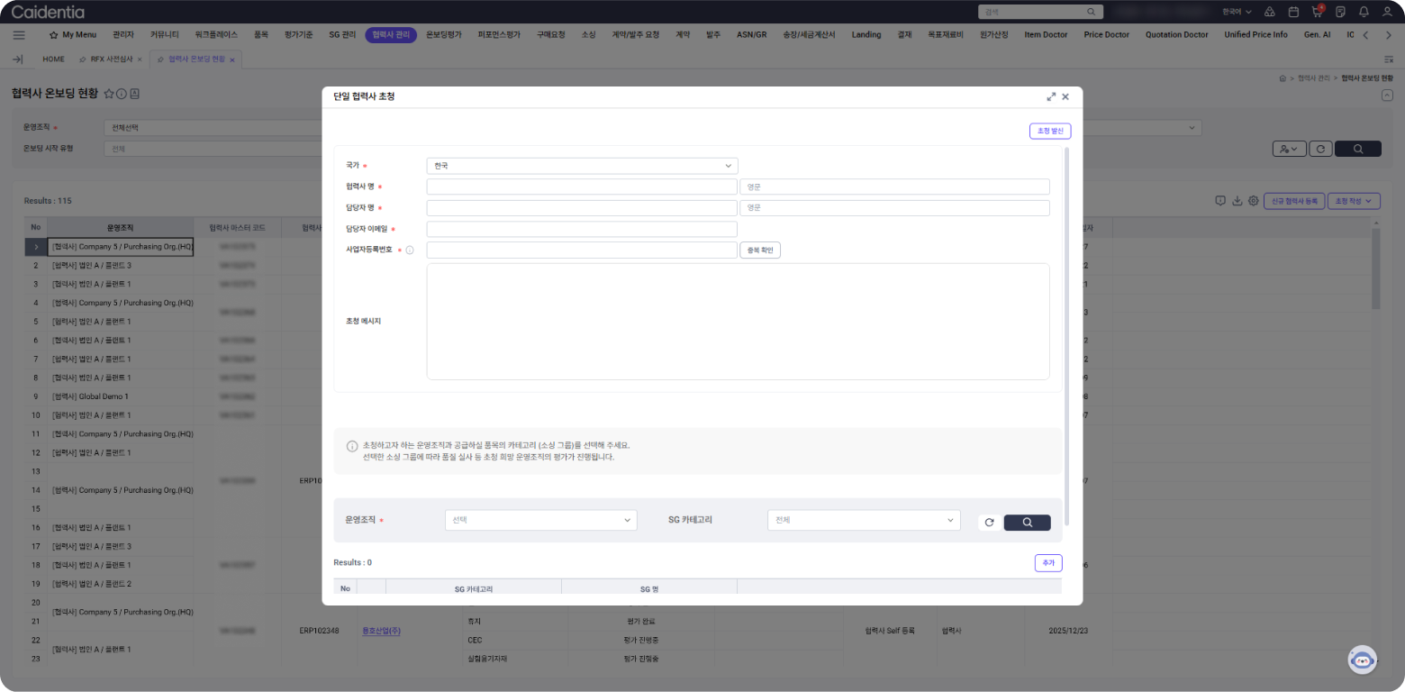 - 단일/다중 신규협력사 초청